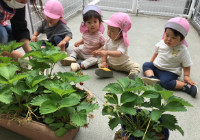 昨年から育てていた苗が大きくなり沢山のいちご🍓が出来ました!みんな真っ赤ないちごを見て、「うわーいっぱいいちごがある」と大喜び!先生と一緒に見たり、収穫したりして楽しみました。