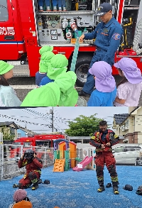 先日今出張所の消防士さんが来てくださりました。近くで消防車をみたり、防火服早着替えをみたりしました。消防士さんにたくさん質問をして、色んなことを教えていただきました。今出張所のみなさま、お忙しい中ありがとうございました。