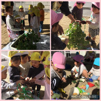 プランターで植えたさつまいもの収穫をしました。みんなで「うんとこしょ、どっこいしょ」🎵の掛け声と共にひっぱり、子ども達はどんなお芋が出てくるか興味深々でした。大きなさつまいも芋が出てきたら、「やったー」と大喜び!さつまいもを触ったり、おままごとをしてさつまいもの葉っぱでお料理したりしてみんなで楽しみました。
